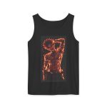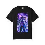 This lightweight cotton tee carries an adventurous, anime-inspired energy. The front features a bold, vertical artwork of a lone hero standing before a towering, shadowed figure and swirling flames — colors and motion that feel alive. Wear it when you want to channel that spirited, battle-ready mood: layered under a jacket for city nights or worn solo on warm days. The soft, breathable knit moves with you and keeps the art front-and-center, making it easy to show your fandom without shouting. It settles comfortably into everyday routines — training, meetups, con panels, or long commutes — and feels familiar the moment you put it on.