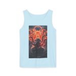 This lightweight jersey tee carries a bold, moody print that reads like a night scene from a graphic novel — deep reds and inky blacks form a dramatic portrait with smaller, intense character vignettes below. Soft, breathable Airlume combed cotton keeps the shirt comfortable through long days and late nights, while the retail fit and crew neckline give it a clean, wearable silhouette. Thoughtful construction (side seams, ribbed collar, shoulder tape, and a tear-away label) keeps the shirt feeling put-together and easy on the skin. It’s a wearable art piece for anyone who wants to add a dark, cinematic accent to casual outfits or layered looks.