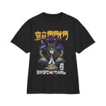 This heavyweight, garment-dyed tee pairs lived-in softness with bold anime energy. The relaxed-fit cotton holds an illustrated street-style print of a masked, white-haired character in muted olive tones with pops of electric blue — a look that reads like a sketchbook come to life. Wear it layered under a jacket or loose with jeans; it settles into the rhythm of everyday wear while letting fandom show without shouting. The dyed finish gives each shirt subtle variation and a comfortable broken-in feel that only improves with time.